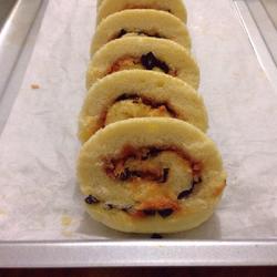 10. Spread a piece of clean oil paper on the table, and place the reverse side of the cake on the oil paper.Spread salad dressing evenly on the surface and sprinkle with minced pork floss and seaweed.Roll up the cake with the help of a rolling pin.
