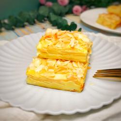 11.Pour into the mold and sprinkle a thin layer of almond slices on the surface.
