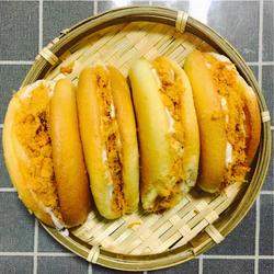 15. Lightly score the back of the cake, apply light cream on the other side and sprinkle with meat floss