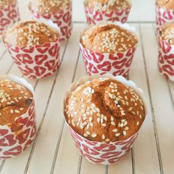 5.Add the cake batter into the paper cup until it is eighty full.The cake will expand after baking.~You can sprinkle sesame seeds on top to make it more fragrant when baked!