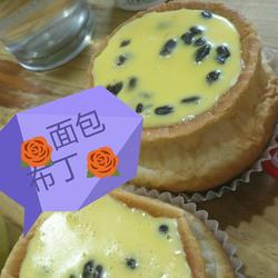 9. Pour the heated pudding liquid into the bottom of the bread.Pour once and solidify before pouring the second time.All over,