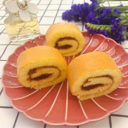 13.I bought strawberry jam.You can use the brand you like.Turn the cake piece over and remove the bottom parchment paper.
