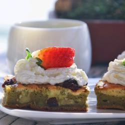 11.Put in the light yellow batter, raisins, and green sugar paste.