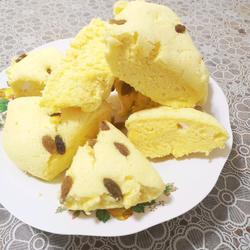 7. Mix well and sprinkle with raisins, cover to keep fresh film and put it into the steamer