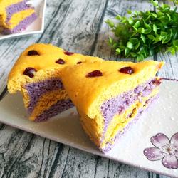 8. Divide the purple potato dough and pumpkin dough into two pieces, roll them into dough, and follow the mold same size.Mine is an eight-inch non-stick mold.Ordinary molds need to be oiled in advance.
