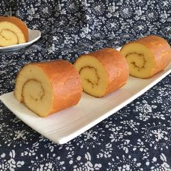 8. Use a rolling pin to press one side of the cake, roll up the cake roll, and use oil paper to shape it