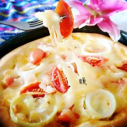 7.Put all the ingredients on the pizza and sprinkle a layer of mozzarella