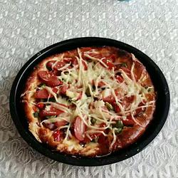 10.Take a piece of dough, roll it out and put it into a pizza pan.