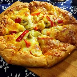 Banana pizza is very sweet and suitable for children.According to your own oven, cover with tin foil after coloring.