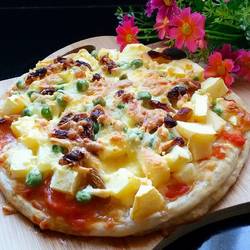 The pizza crust with milk and sugar on the dough tastes particularly good.When baking, pay attention to the heat and time to avoid burning it.