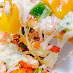 3. Spread pizza sauce in the middle, put mozzarella cheese, chopped onions and colored peppers, and then spread Place a layer of mozzarella cheese, add bacon and bake for 20 minutes for the first time.