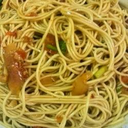 1.Put oil in the pot Heat up, add garlic paste, tomato slices, minced onions, stir-fry until cooked, add sugar, add a little chicken essence, add water and cook, when it is almost dissolved, add tomato sauce and add some chili sauce to reduce the juice, cool and refrigerate, cook the alkaline noodles until cooked , pour cold water, drain the water and let cool the sauce and raw meat, mix well and sprinkle with chopped green onion and coriander.