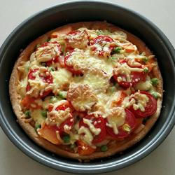 5. Brush a layer of corn oil on the pizza pan and then put the dough in and press the edges.
