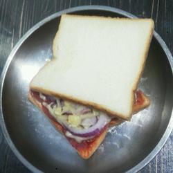 Bread slices ( two slices ) | Tomato sauce, cheese, sausage ( ) |