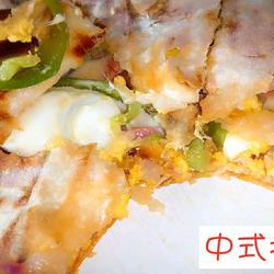 You can use your own dough for dough Pancakes, but very thin.The amount of grated cheese added depends on personal taste.The hand-noodle cakes I use here are very crispy when baked, crispy on the outside and tender on the inside.