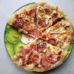7.Cut it, put it on a plate, and add salad dressing and tomato sauce