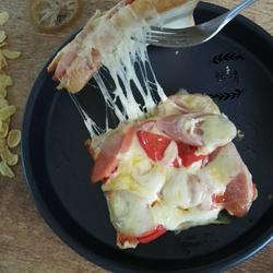 Use mozzarella cheese to make pizza with cheese shreds.It is particularly delicious and must be eaten while it is hot, otherwise the drawing will not be so good.In addition, the tomatoes and ham inside can be replaced with your favorite ingredients, which will make it more delicious.