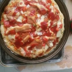 6. Preheat the oven to 200 degrees, put it in the oven for 5 minutes, then pour a layer of tomato sauce.