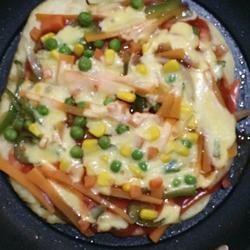10. Add the fried green and red peppers, onions, carrots, corn kernels, etc., and finally put cheese!