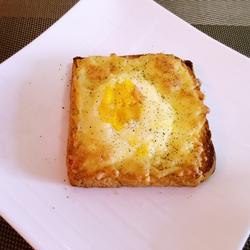 3.Crack an egg in the recessed area of the toast, as shown in the picture