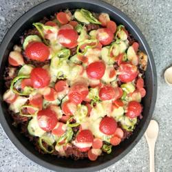 5.Brush a layer of pizza sauce on the rice, the more it tastes better