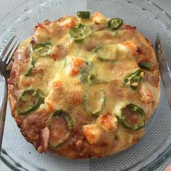 Pizza sauce ( appropriate amount ) | Green pepper ( 1 ) |