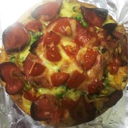 1.Take out the finished pizza from the freezer in advance, thaw it, and place it on a baking sheet wrapped in tin foil.I used an 8-inch pizza.