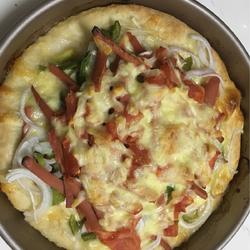 3. Brush a layer of pizza sauce first, then spread a layer of vegetables and sprinkle mozzarella evenly cheese, spread another layer of vegetables, and sprinkle a layer of cheese on top.