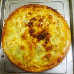 3. Bake the pizza base, right side up, and apply pizza sauce.If you like tomato sauce, you can Put some.Spread some condensed milk on it and it tastes even better.