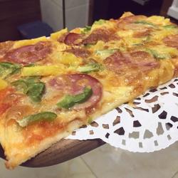 10. Wait until it is preheated and put the baking sheet Put it in the oven and wait for 10 minutes, and the delicious Hawaiian pizza is ready