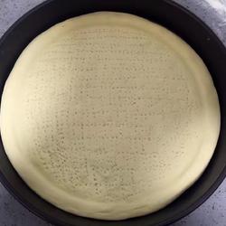 9.Roll out the crust, thin in the middle and thick around the perimeter