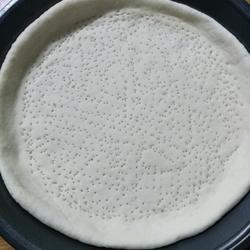 4.Use a rolling pin to flatten a small hole and place it into an 8-inch pizza pan.Pay attention to the edges.Make it thicker and store it in the refrigerator before eating it as soon as possible