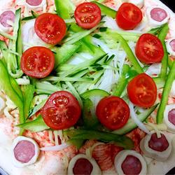 11. Then put the ingredients and brush a layer of tomato sauce on the crust.