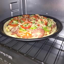 3.Sprinkle an appropriate amount of shredded cheese, and then spread the first layer of large ham.Because I like cheese, I sprinkle another layer on the ham.cheese, and then spread a layer of corn kernels