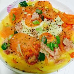 The pancake should not be too thick, just a thin layer, otherwise the microwave will take longer; the tomatoes will release water and mix with the cheese, which I think will be more delicious.This is different from the one that comes out of the oven.