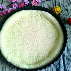 9. Roll the dough into a round shape and put it into a greased pizza pan.Use a spoon Press around to make a cake that is thick around the edges and thin in the middle.