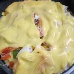 3. Knead the dough into a cake and spread it on the baking sheet, brush it with tomato sauce and cheese.Then put all the ingredients, and then top with cheese