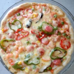 1.The hot water fermentation of the dough is fast and good.2.Control the watering time according to the vegetable material.3.Leave some water in the pan before baking, so that it will not burn easily during baking, and the vegetables and cheese can be fully cooked.4.Turn the pan to heat evenly, and finally the pizza can shake in the pan.