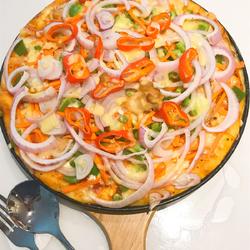 11.Put onions, peppers, and carrots, Chicken, then sprinkle with a layer of cheese