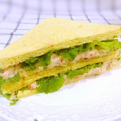 10. Place a piece of lettuce on the toast, then add the sandwich sauce evenly, and then add it again Place a piece of lettuce.