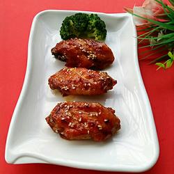 6.The delicious grilled wings are out of the pan, put them on the table and cook them broccoli.