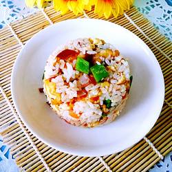 9.Remove the bowl, the beautiful colorful vegetable fried rice is completed