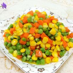 4. Boil water in a pot, add a few drops of oil into the pot, and put the corn and peas together Boil the water for about a minute.Remove and drain the water and set aside.
