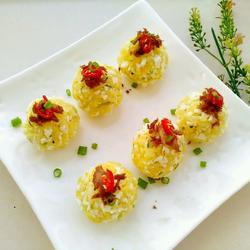 11. Place the well-cooked tuna on the rice ball, sprinkle with chives and millet Just pepper.