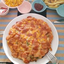 Pizza crust ( one ) | Ham sausage ( one ) |