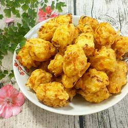 6. Heat the oil in the wok, form the vegetable batter into balls one by one, and fry them over medium-low heat until golden brown