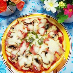 7.Put the vegetables and bacon on the cheese, and bake at 170 degrees for 10-15 minutes on the upper and lower heat.