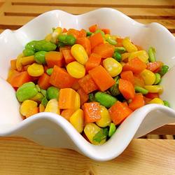 5.Put water into the pot and boil, blanch the corn kernels, edamame, and diced carrots for half a minute, and control Water for later use