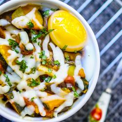 8. Or, add an egg, sprinkle with grated cheese, and bake at 200 degrees for 10 to 15 minutes, depending on Personal requirements for egg doneness.
