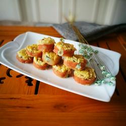 5.Shape the mashed potatoes and put them on the bacon
